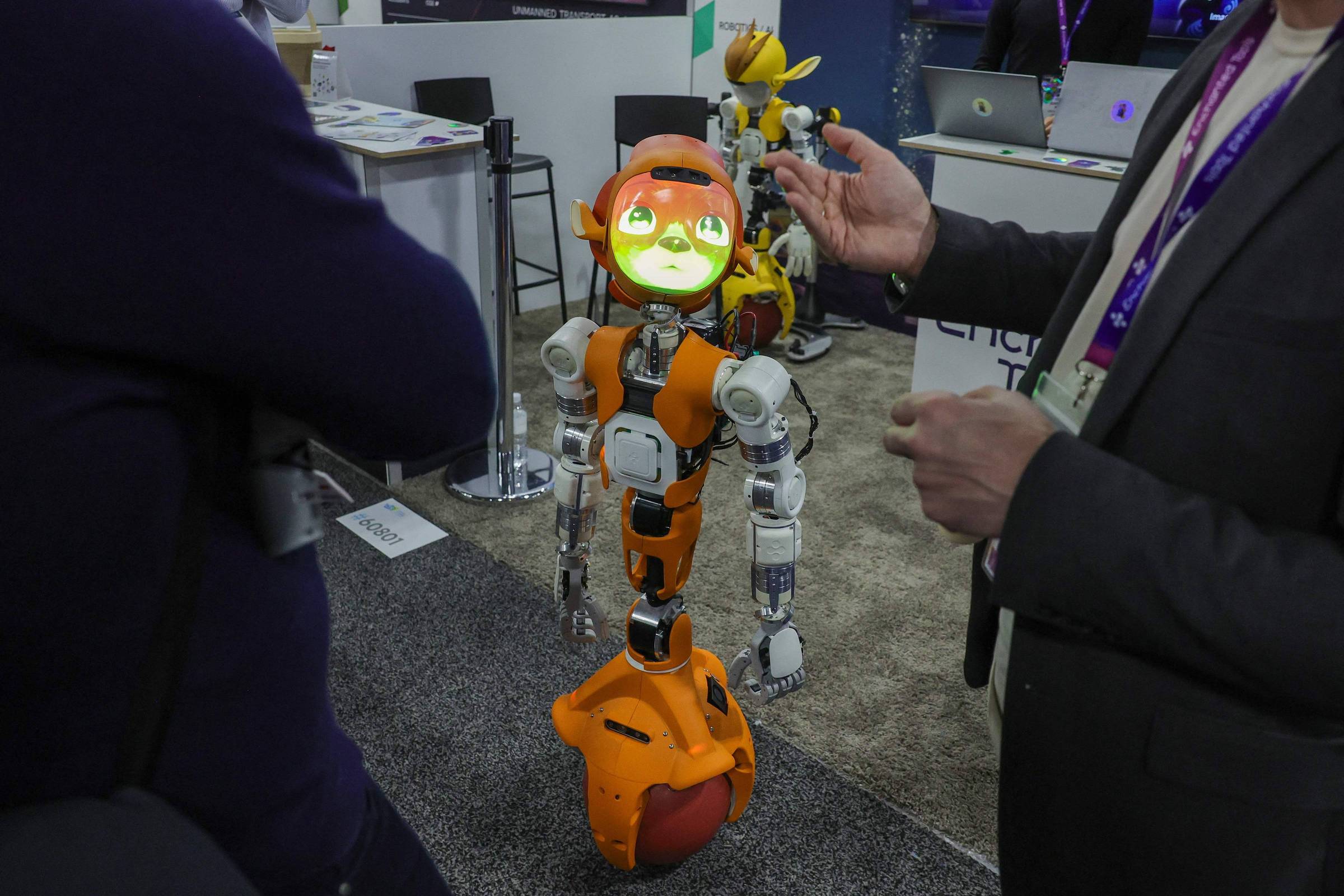 Graças à IA generativa, os robôs dependem menos de instruções prévias. Mas “não se preocupem, robôs como nós são projetados para ajudar os humanos a melhorar suas vidas”, disse o robô Moxie à AFP.