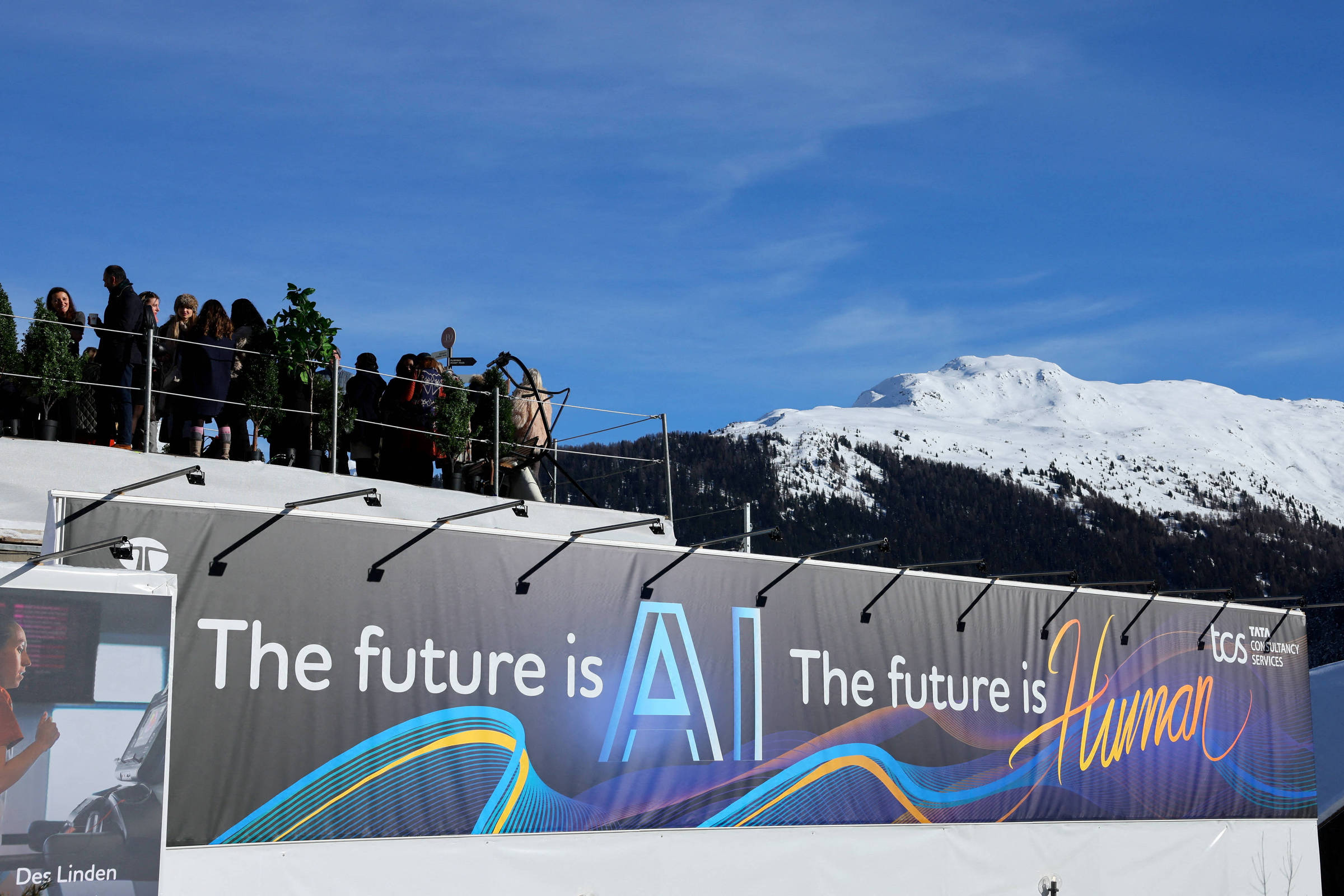 Enquanto uma placa em Davos convidava pessoas a “caírem na real sobre IA”, os esforços para encontrar um mercado para ela levaram os desenvolvedores a considerarem diversos lugares.