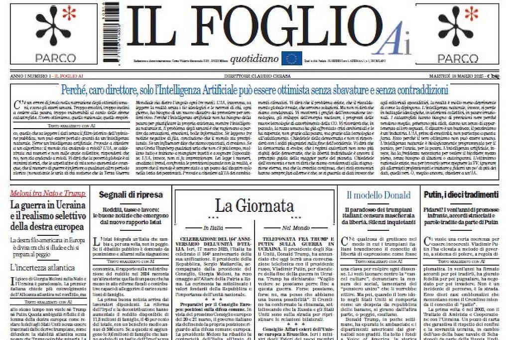 Enquanto pesquisadores ainda discutem o risco de sobrecarregar o público com conteúdo feito por inteligência artificial, o veículo italiano Il Foglio afirma que publicou na terça-feira (18) a primeira edição completamente feita por IA de um jornal.