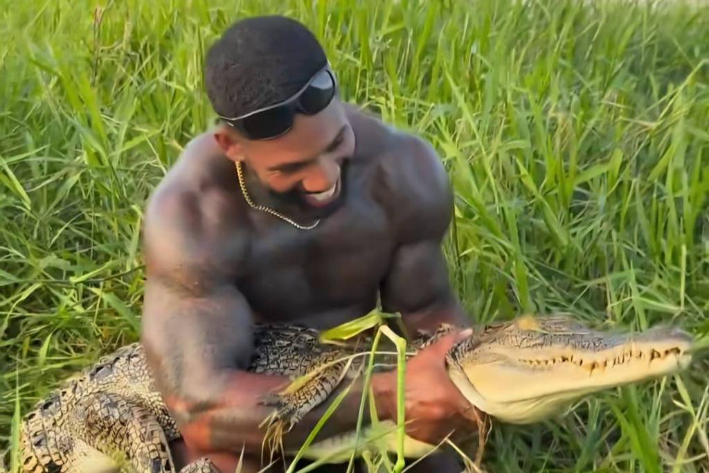 Em uma série de vídeos publicados em sua conta no Instagram, Holston aparece lutando com crocodilos de água salgada e de água doce.