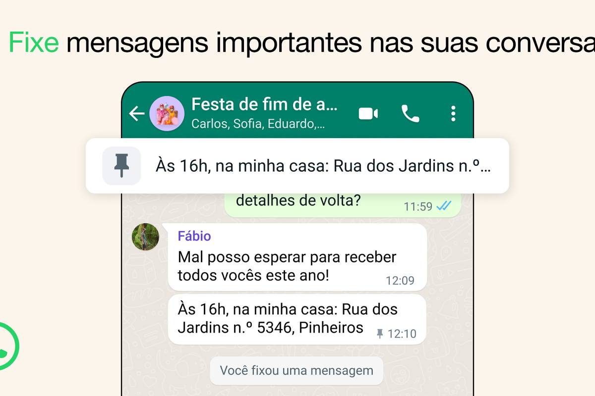 A partir desta terça-feira (12), o WhatsApp passa a permitir fixar uma mensagem em conversas no aplicativo. A opção vale para bate-papo privado e para grupo.