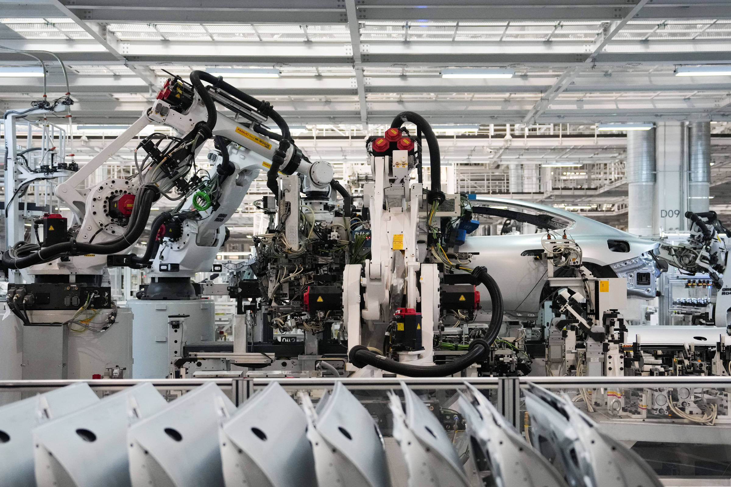 Fãs leais da Xiaomi, chamados de “mi fen”, lotam a fábrica todos os dias para acompanhar a linha de produção, que monta um carro a cada 76 segundos. Guias turísticos orgulhosamente comparam os processos de fabricação aos da Tesla, enquanto a empresa chinesa busca emular a linha automatizada do rival americano e produzir internamente componentes críticos de carros elétricos.